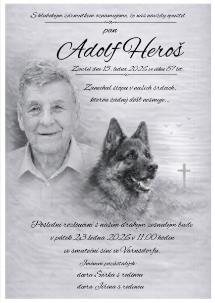 S lítostí oznamujeme, že dnes nás ve věku 87 let opustil velký kynolog a skvělý člověk - pan Adolf Heroš.
